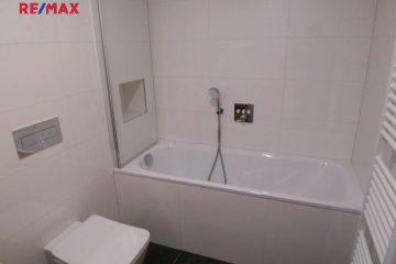 Nabízím pronájem zcela nového, světlého, nezařízeného bytu 1+kk (35,2 m2) s lodžií (4,9 m2), který se nachází ve 4. NP bytového domu ve vyhledávané lokalitě Holešovice. Kuchyňský kout je vybaven moderní kuchyňskou linkou se sklokeramickou deskou se 2 plotýnkami, digestoří, myčkou a vestavěnou mikrovl. troubou. Byt je situován na jižní stranu. Koupelna je zařízena vanou se zástěnou (hlavová i ruční sprcha), umyvadlem, topným tělesem (žebřík), zrcadlem a toaletou. Hliníková okna, podlahové krytiny – laminátová plovoucí podlaha s kročejovou izolací a dlažba, odhlučněné zdi, centrální vytápění, klimatizace, sofistikovaný požárně bezpečností systém, kamerový systém. Záloha na poplatky činí Kč 2 000,-/1 osoba + Kč 400,- za internet O2. Výborná dopravní dostupnost tramvaje č. 1, 6, 12, 25 a 94, metro C – 2 zastávky tramvají a metro B – 3 zastávky tramvají. Veškerá občanská vybavenost v místě, byt je volný.